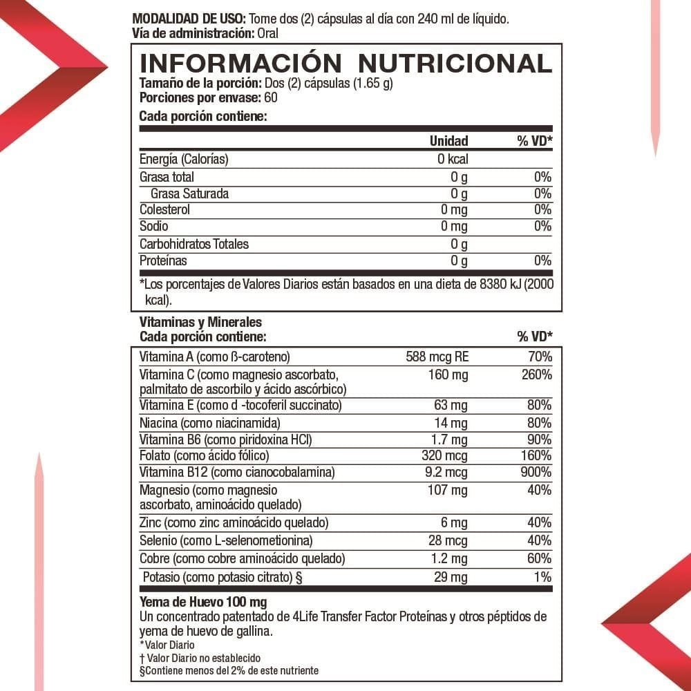 Los beneficios inmunológicos inigualables de 4Life Transfer Factor se fusionan con nutrientes de élite, como la coenzima Q10, el ginkgo biloba, el ajo y el extracto de levadura de arroz rojo.